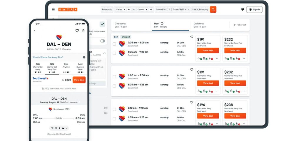 - Kayak: This site shines when planning complicated itineraries or looking at multi-city trips. Their “Explore” feature also helps spark travel inspiration based on your budget.