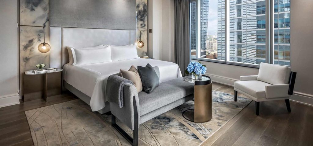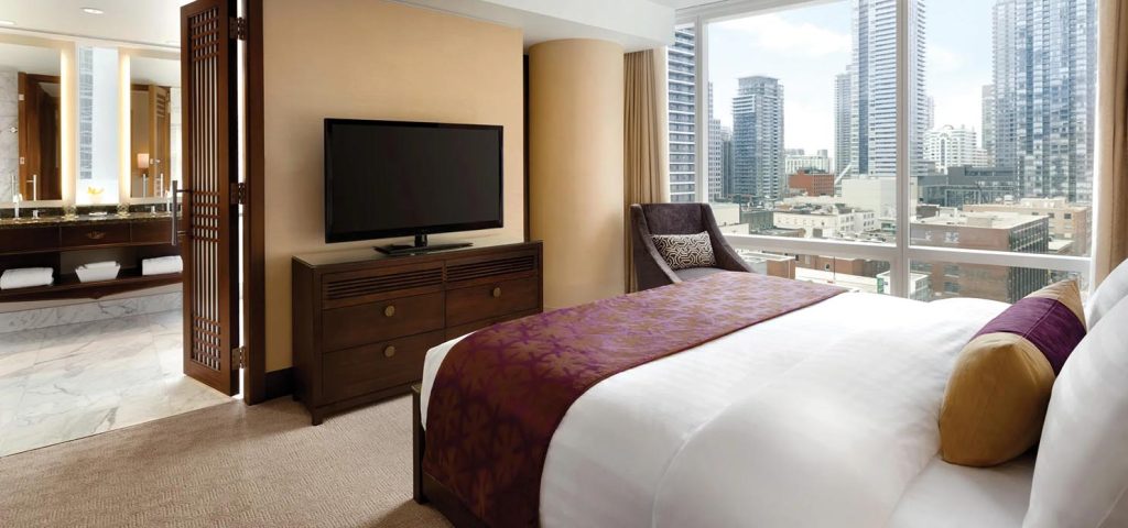 Shangri-La’s rooms and suites are generously sized and feature Italian marble bathrooms, deep soaking tubs, and integrated smart home systems for a personalized guest experience. The luxurious CHI Spa offers signature treatments inspired by traditional Asian healing philosophies, including herbal rituals and hot stone therapies. Guests can also enjoy an indoor pool with cabanas, an infrared sauna, and a modern health club. For dining, “Momofuku Noodle Bar” and other in-house culinary experiences bring innovative Asian fusion to the forefront of Toronto’s dining scene.